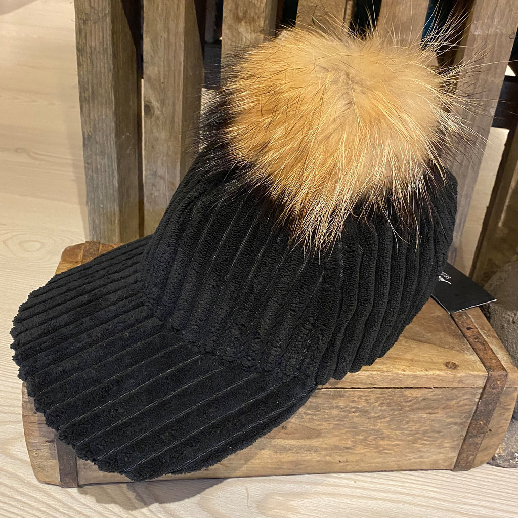 Mega cool og anderledes fløjls kasket i med dusk på toppen. Dusken kan knappes af alt efter behov. Kan reguleres i størrelsen i nakken.