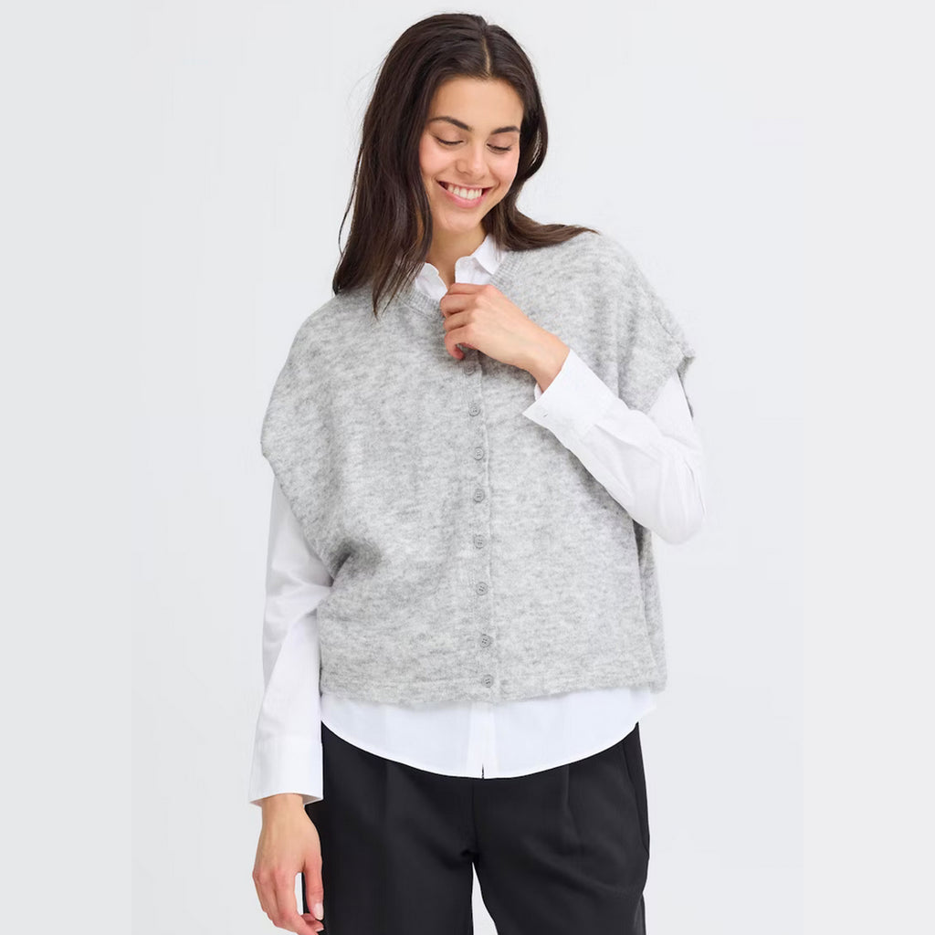 Lækker cardigan med korte ærmer har afslappet pasform, rund halsudskæring og knaplukning foran. Blødt materiale og komfortabelt snit sikrer alsidig anvendelse til hverdagsbrug. Brug vesten over skjorter og kjoler.