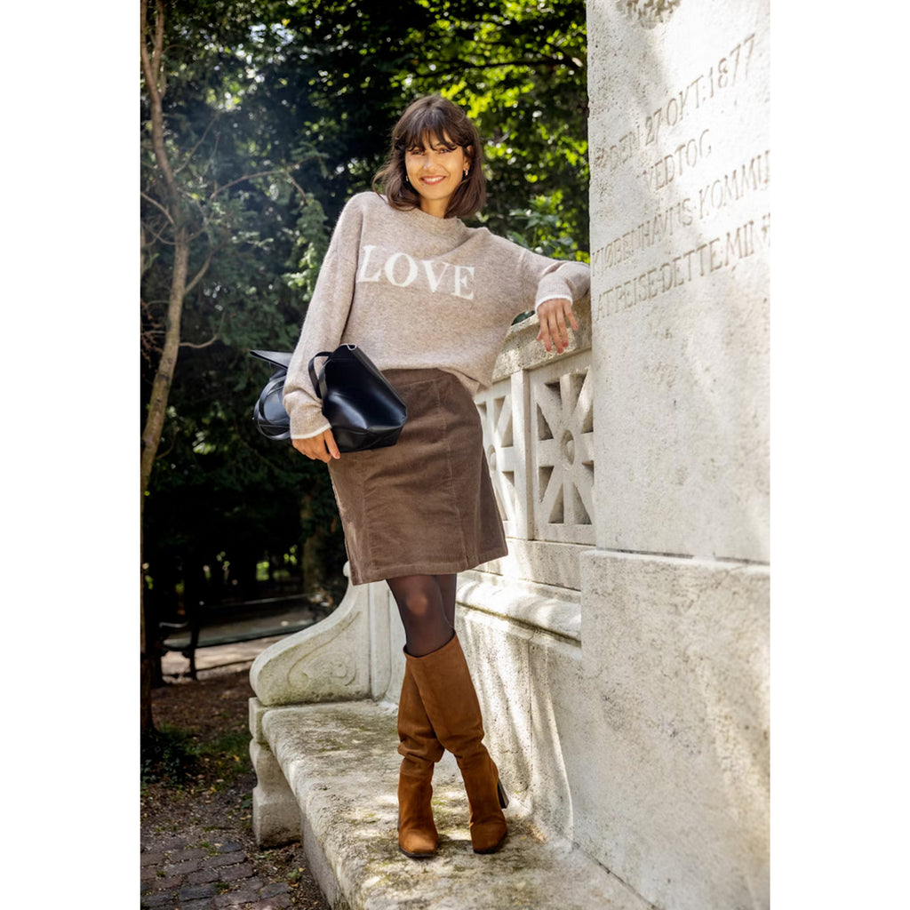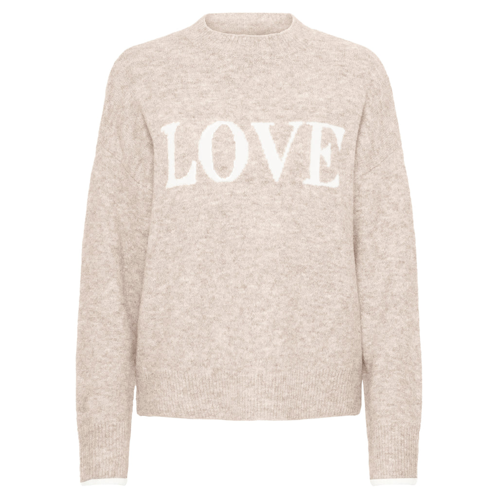 Super cool strik pullover har afslappet pasform, rund halsudskæring og lange ærmer. Blød strik og tekst foran gør den oplagt til både arbejde og fritid.
