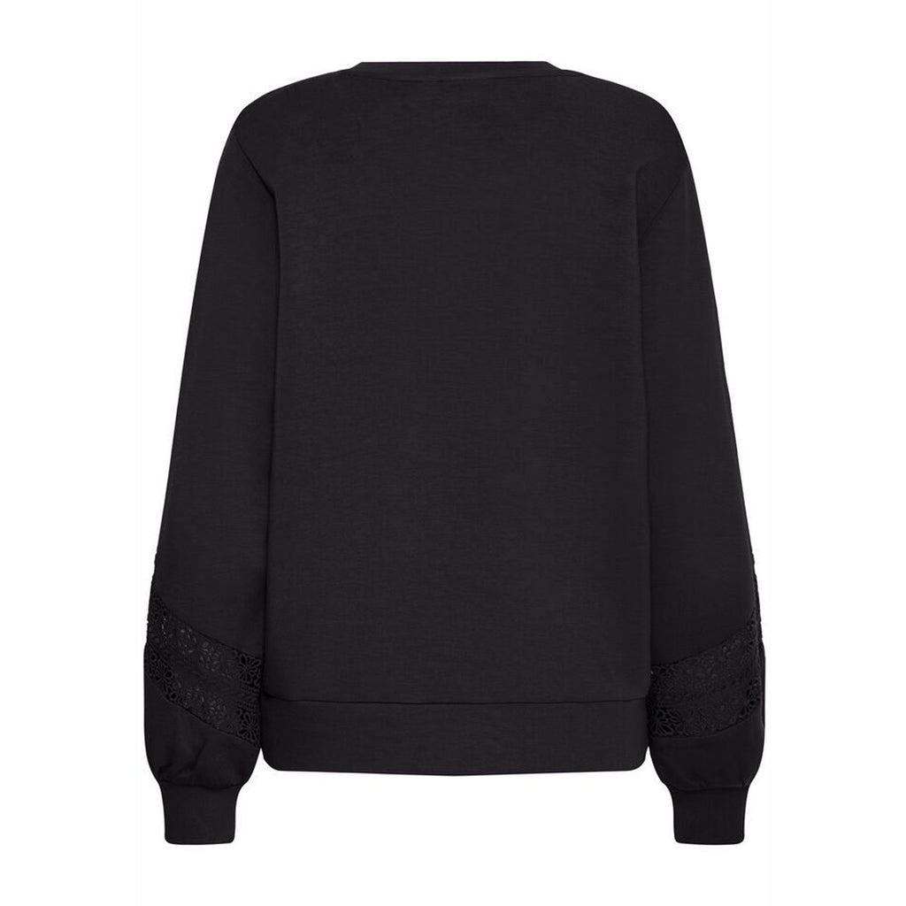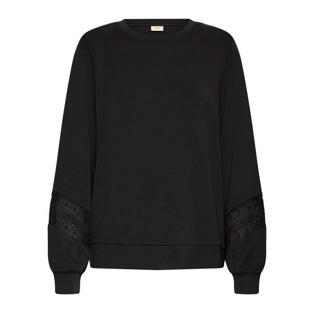 Lækker blød pullover med en meget fin detalje med blonde på ærmet. Blusen har rund hals og lange ærmer.
