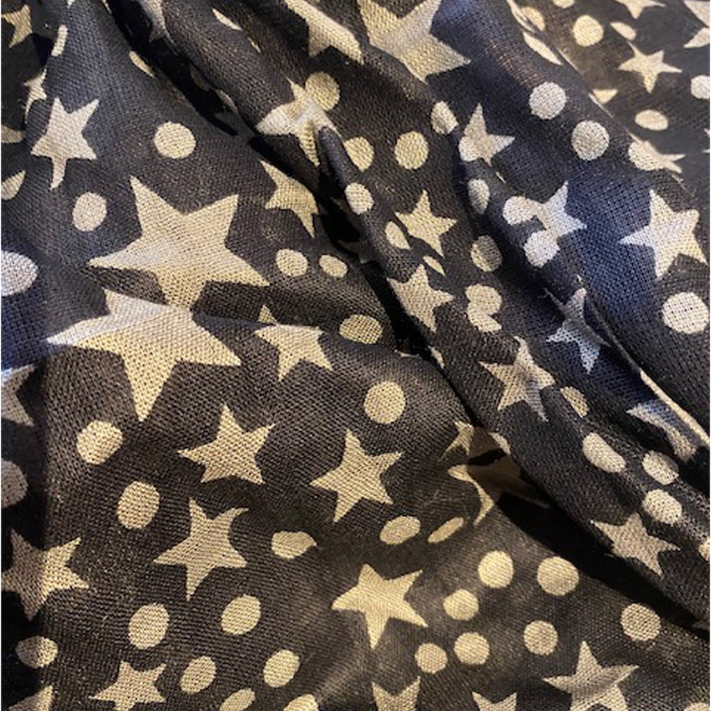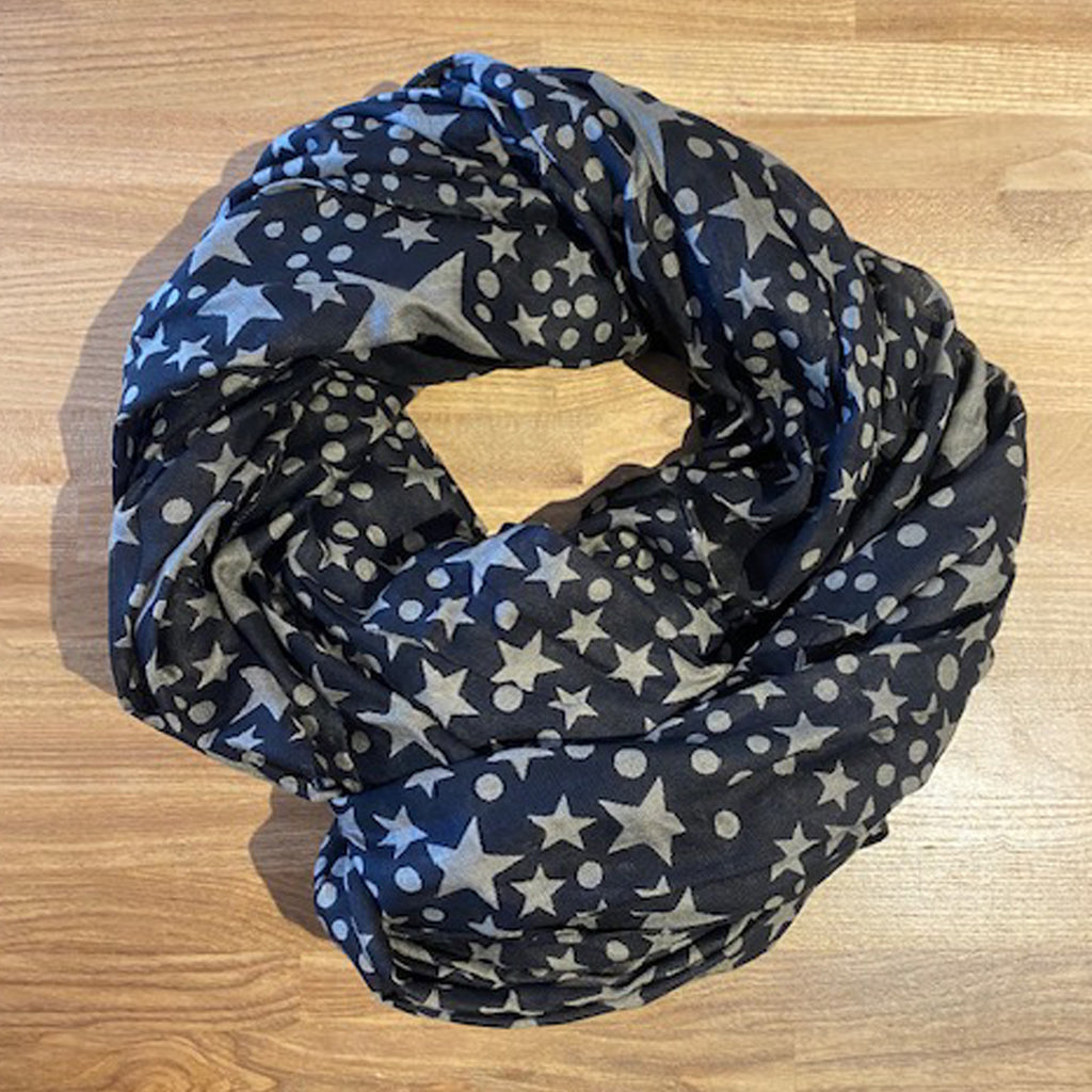 Lækkert tørklæde fra Amust. Tørklædet er i 100% viskose og har stjerner og prikker.