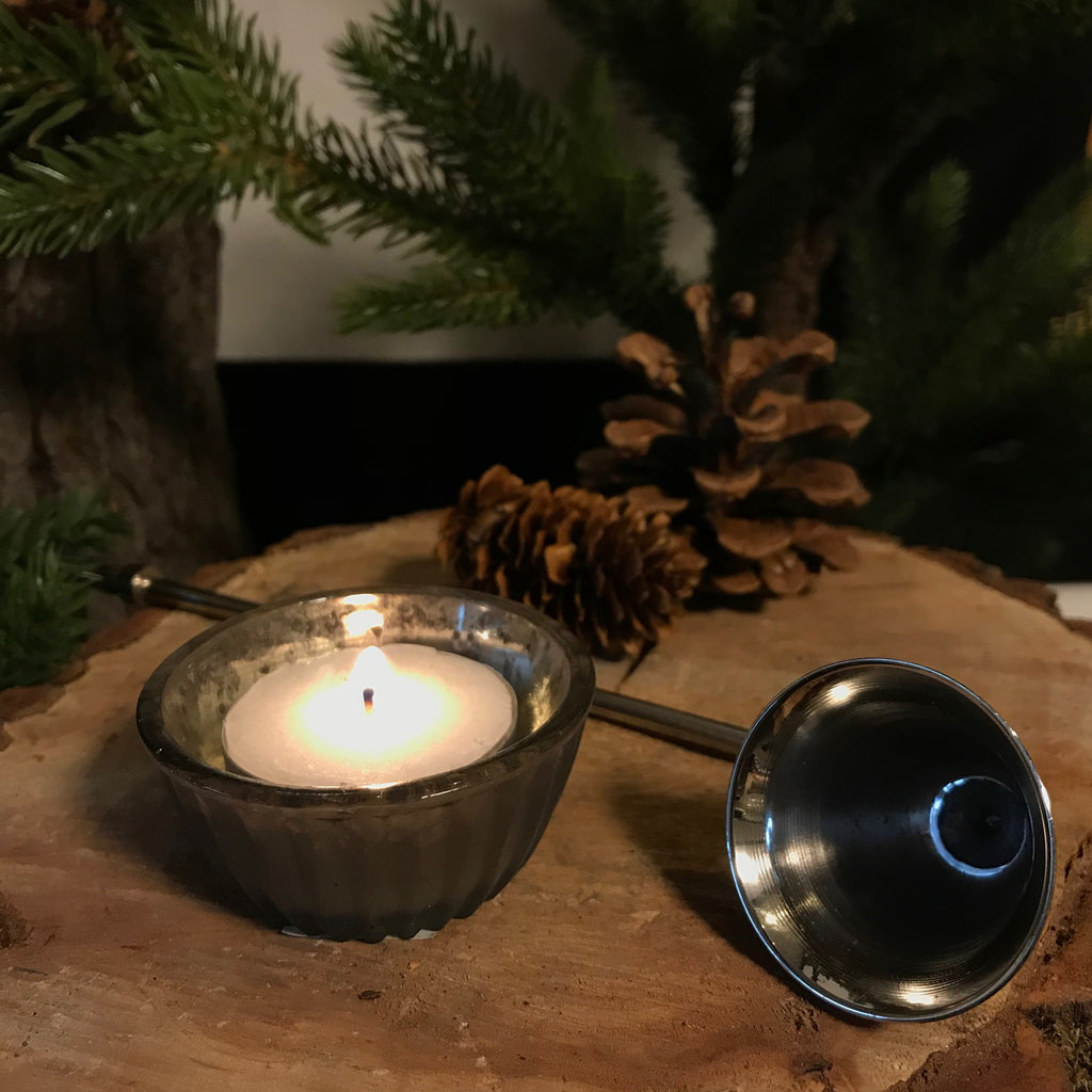 Slukker stearinlys sikkert - så de ikke drypper eller soder. Hoved med hængsel gør det nemt at slukke lys i lanterner og lysekroner.