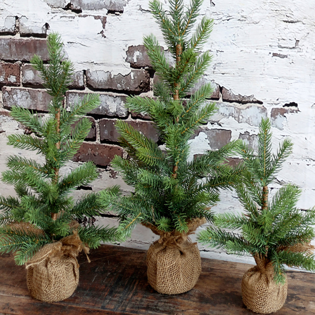 Dekorativt Fleur grantræ i jutepose.