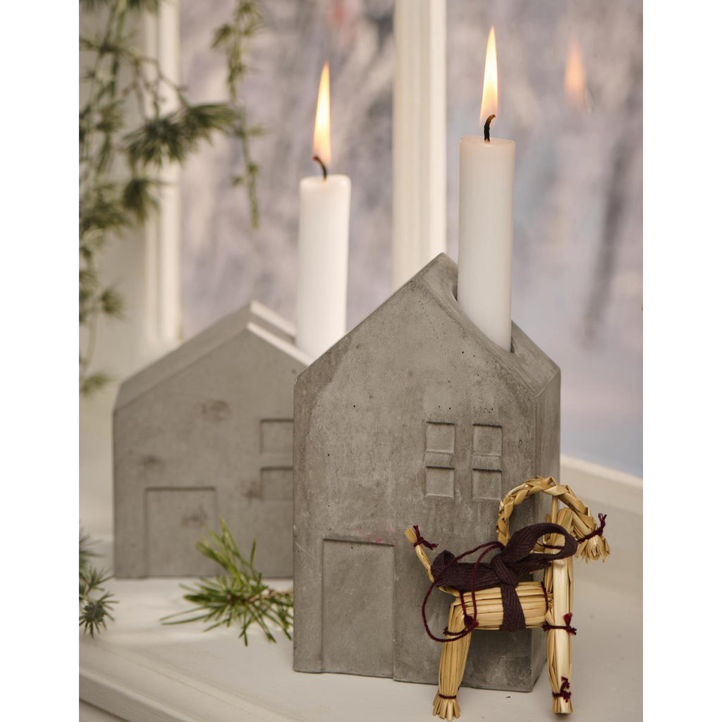 Lysestage, fremstillet af beton, er formet som et hus og perfekt egnet til lys med en diameter på 2,2 cm. Dens enkle, men charmerende rustikke design bringer en rolig og moderne atmosfære til ethvert hjem. Betonmaterialet giver holderen et robust og tidløst udtryk, der komplementerer en række forskellige indretningsstile. Den ser særligt godt ud på et spisebord, på en hylde eller som et dekorativt element i en vindueskarm.
