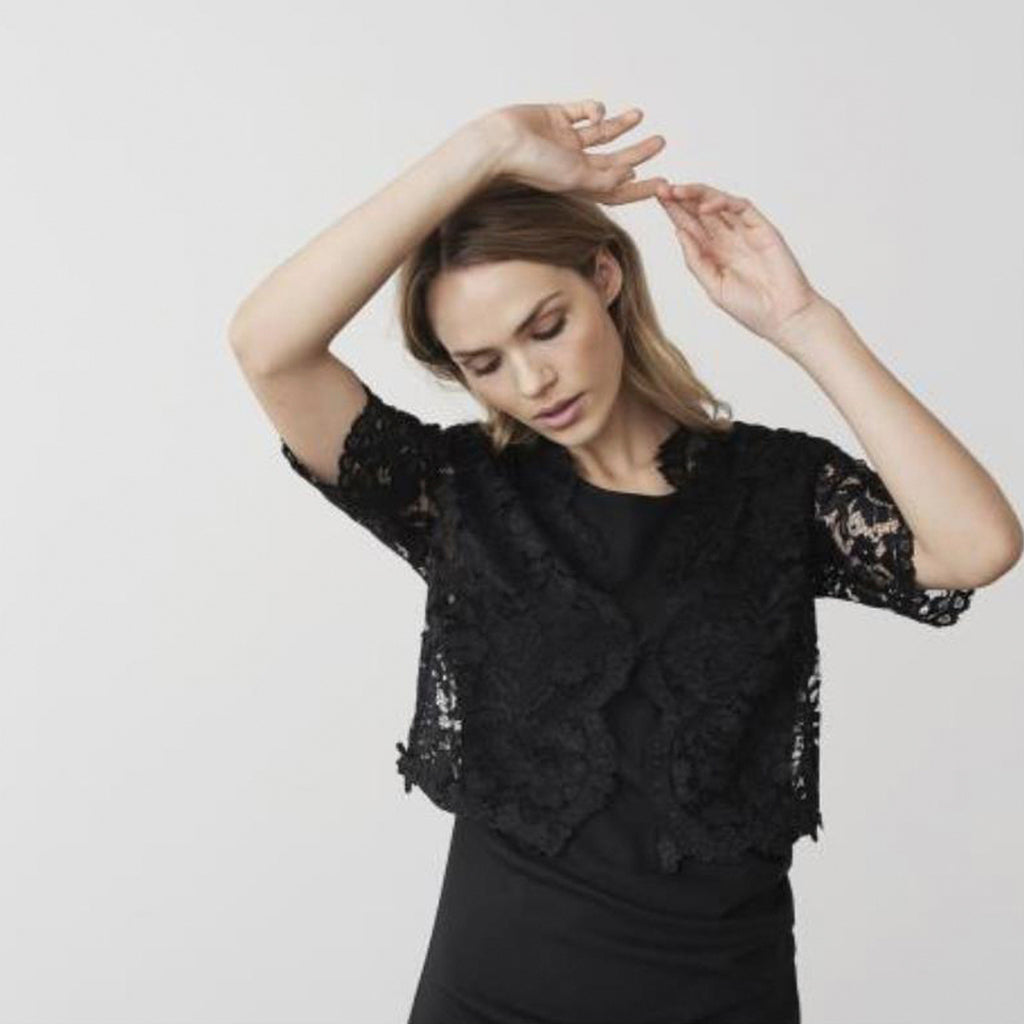 Behagelig og trendy bolero. Den er perfekt til at pifte den simple og enkle kjole op eller skabe et festlig look til dine klassiske pæne bukser. Boleroen har 3/4 ærme og er i en behagelig bomuldskvalitet.