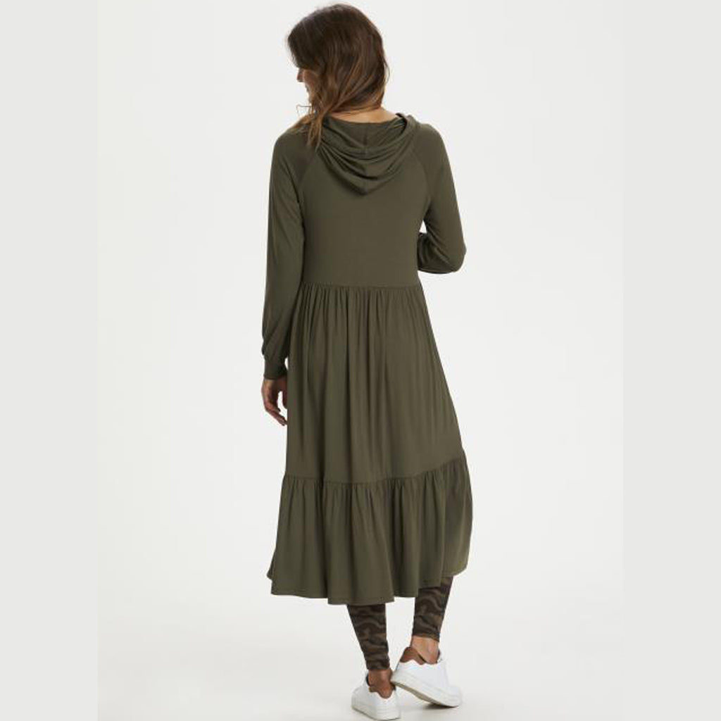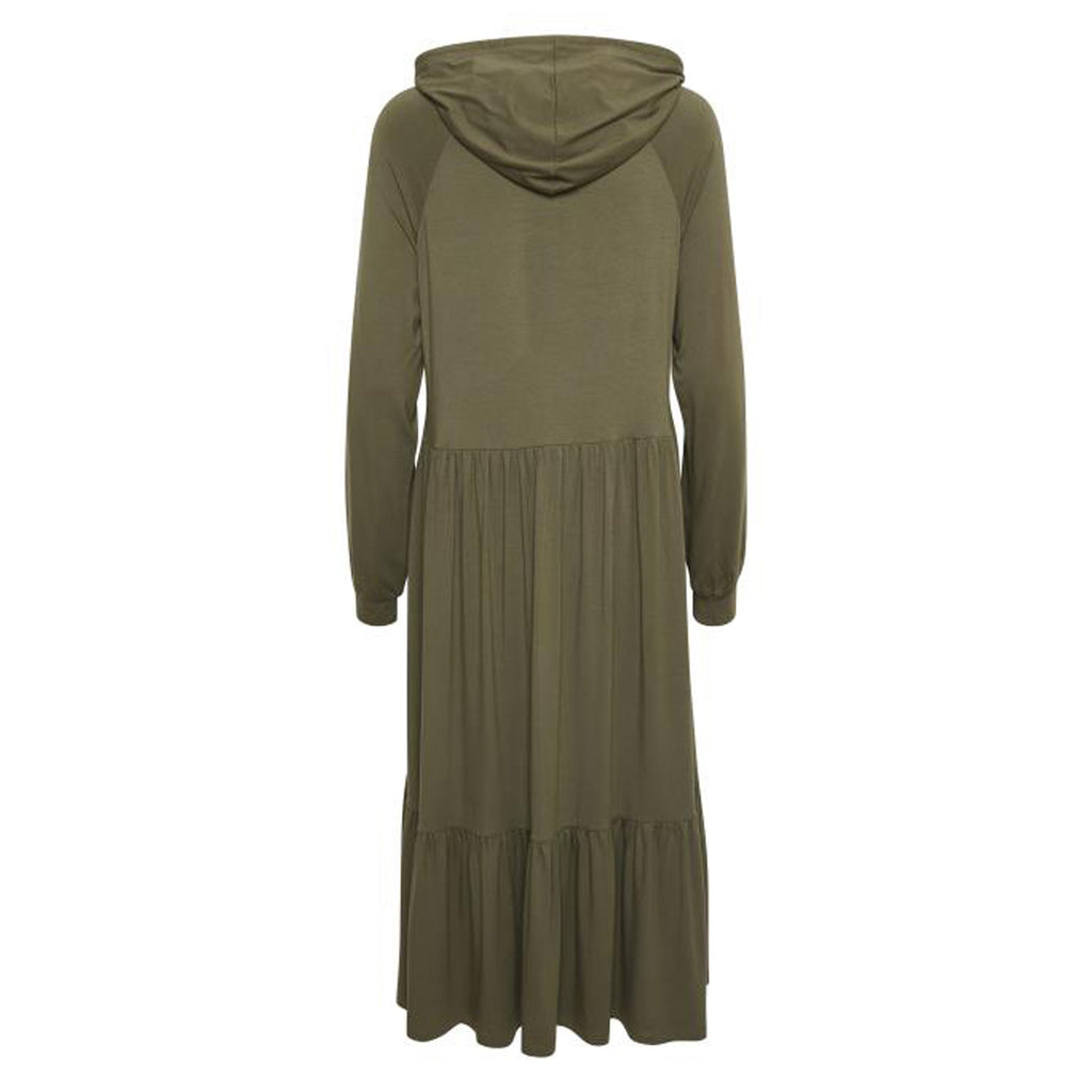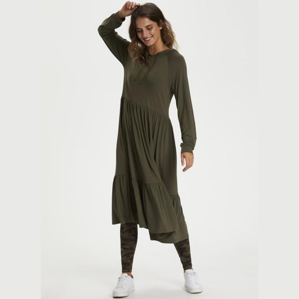 Super dejlig og blød kjole i en flot model med lange ærmer og hætte med bindebånd. Kjolen har dekorative syninger og så er den fremstillet i et virkelig blødt materiale med stretch, som giver kjolen en fantastisk komfort og pasform.
