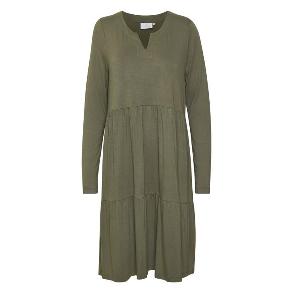 Super dejlig og let kjole i en flot model med lange ærmer. Kjolen har fin lille v-hals og er skåret ved taljen, som giver kjolen en fantastisk pasform. Super fin med stramme jeans eller leggings under eller bare ben en dejlig sommerdag.