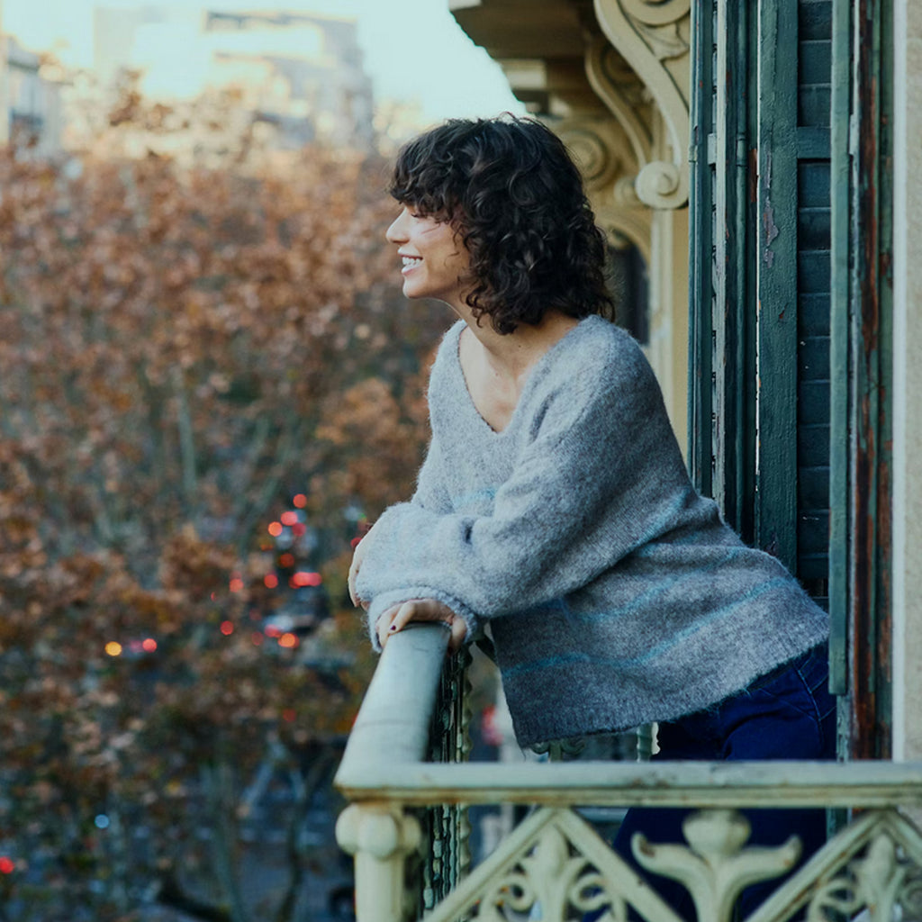 Flot stribet V-hals sweater med en afslappet pasform og lange ærmer for daglig komfort. Diskrete horisontale striber samt blød strik skaber et alsidigt hverdaglook til mange anledninger.