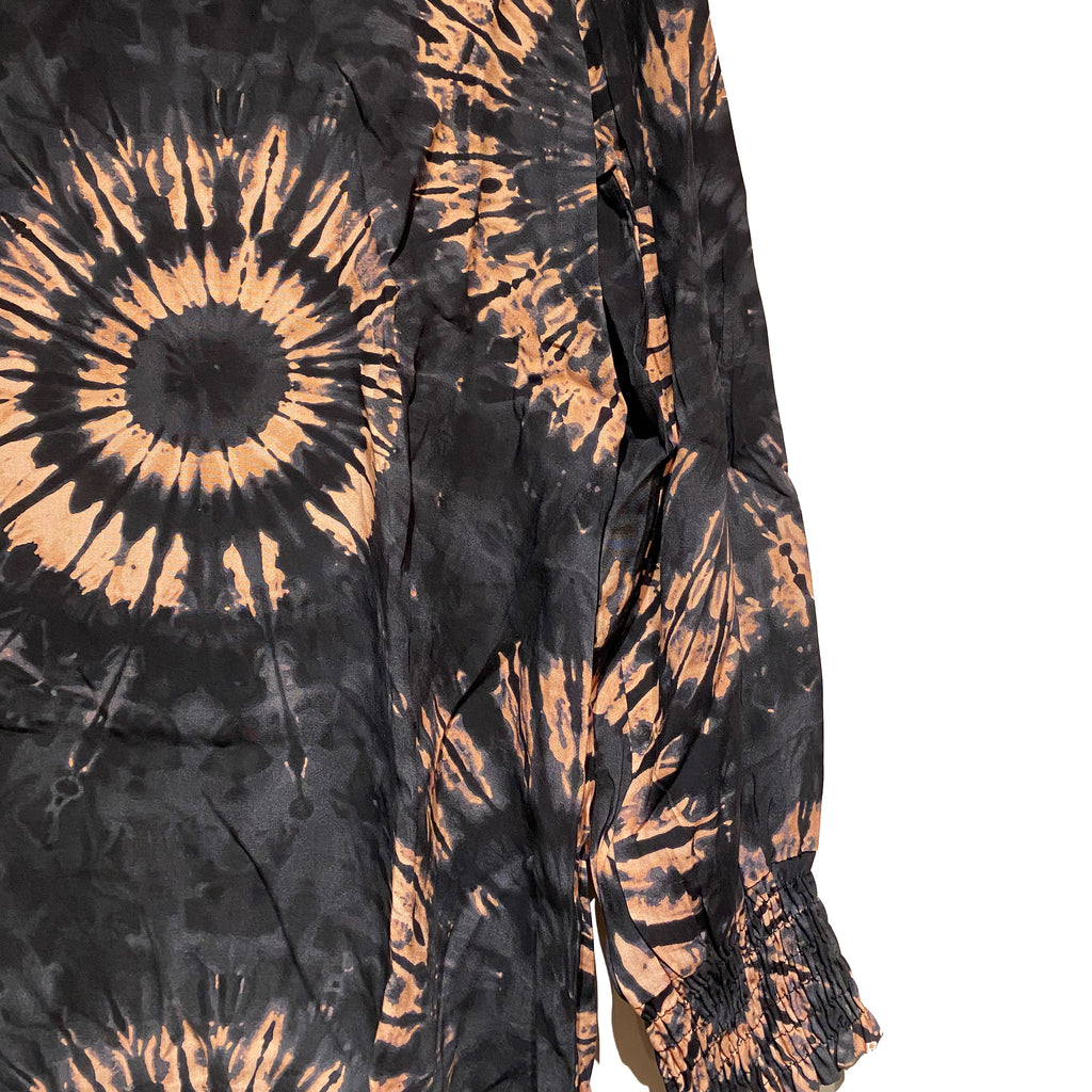 Elegant bluse med et meget smukt grafisk print. Blusen en fin v-hals og lange ærmer med elastik – smock kant.